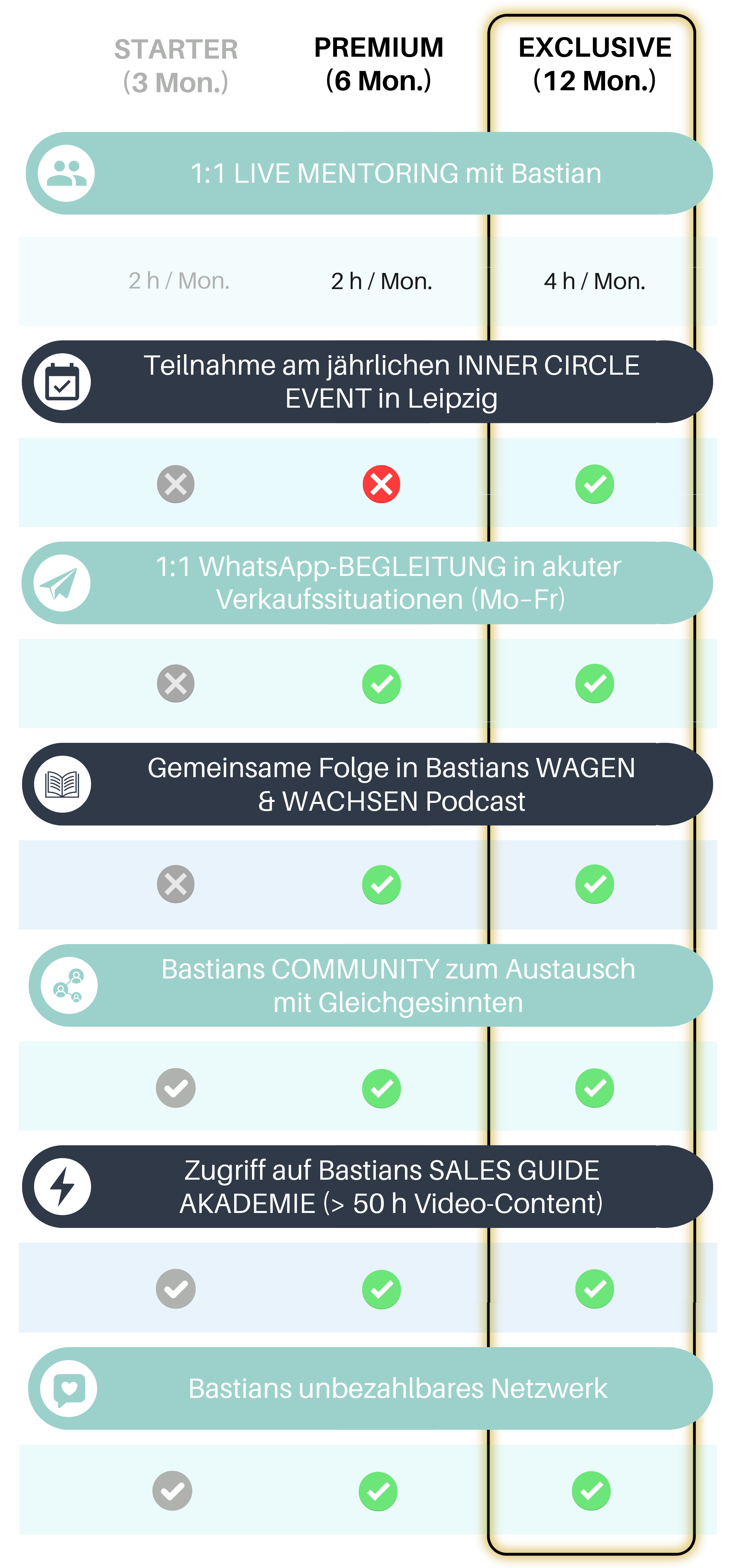 Zugang zu Bastians Community & exklusivem Online-Mitgliederbereich – der Sales Guide Akademie – mit über 50 Stunden Video-Content für erfolgreiche Akquise und florierende Gespräche
